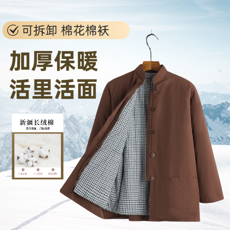 可拆卸手工棉花棉袄男爸爸冬装外套爷爷棉服冬季加厚中式纽扣棉衣