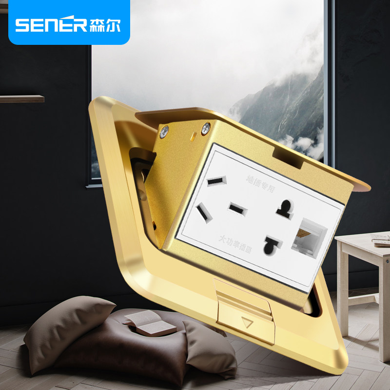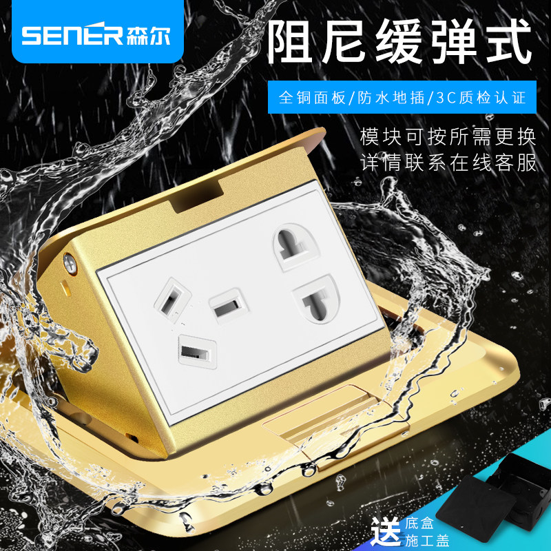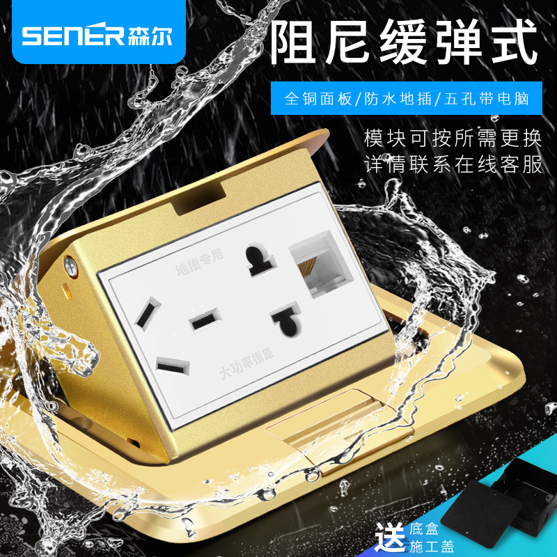 优选森尔地插座全铜防水阻尼隐藏式五孔六孔多功能家用地面地板插