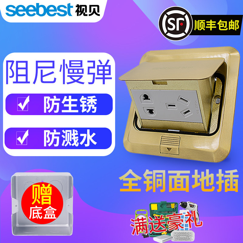视贝地插座全铜防水阻尼电源5五孔隐藏式地板地面家用地开慢弹起