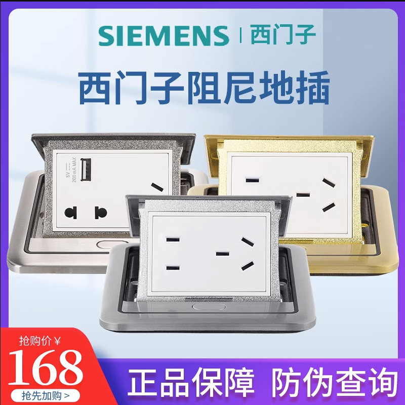 西门子二三插五孔地插座 隐藏式 全铜防水地面地板无阻尼弹地插座