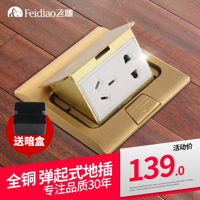 全铜防水地插座隐藏弹起式地板开关插座无阻尼五孔带电脑网线地插