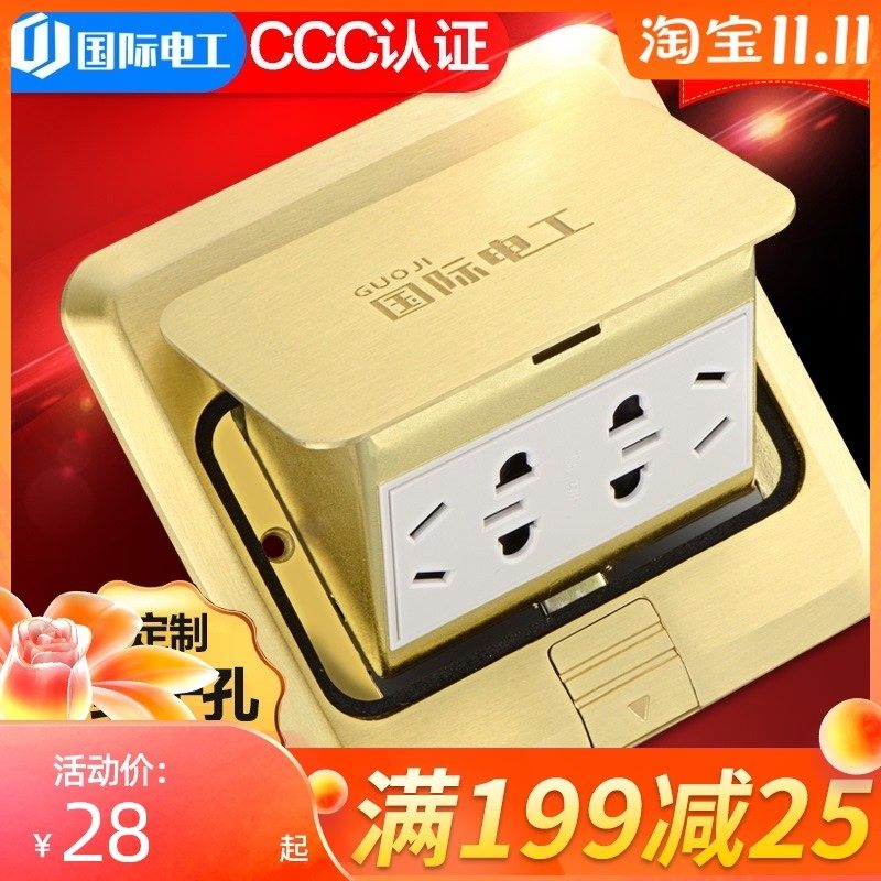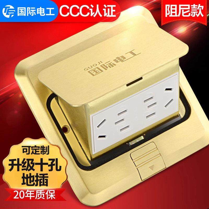 国际电工地板插座全铜防水阻尼地插座隐形嵌入式五孔家用网络地插