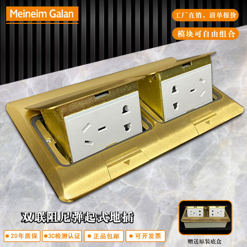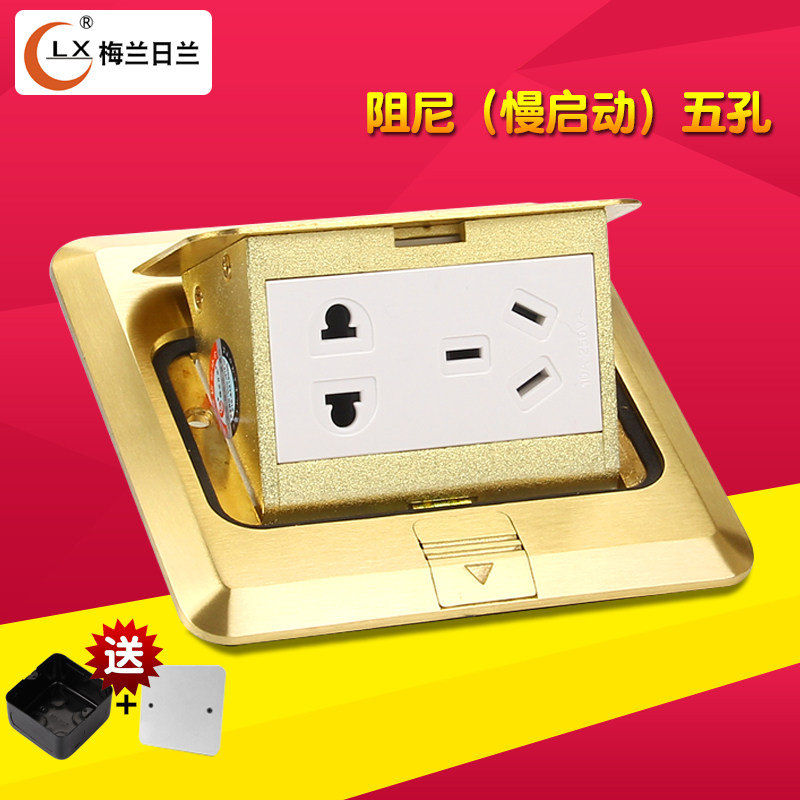 正品梅兰日兰地插座全铜防水阻尼隐藏式液压缓冲五孔地板地面插座