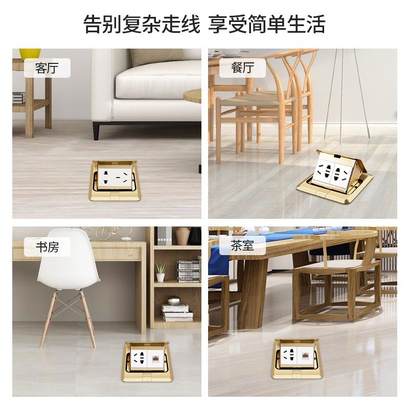 梅兰日兰地插座全铜防水无阻尼隐藏式五孔网络线地板地面插座家用