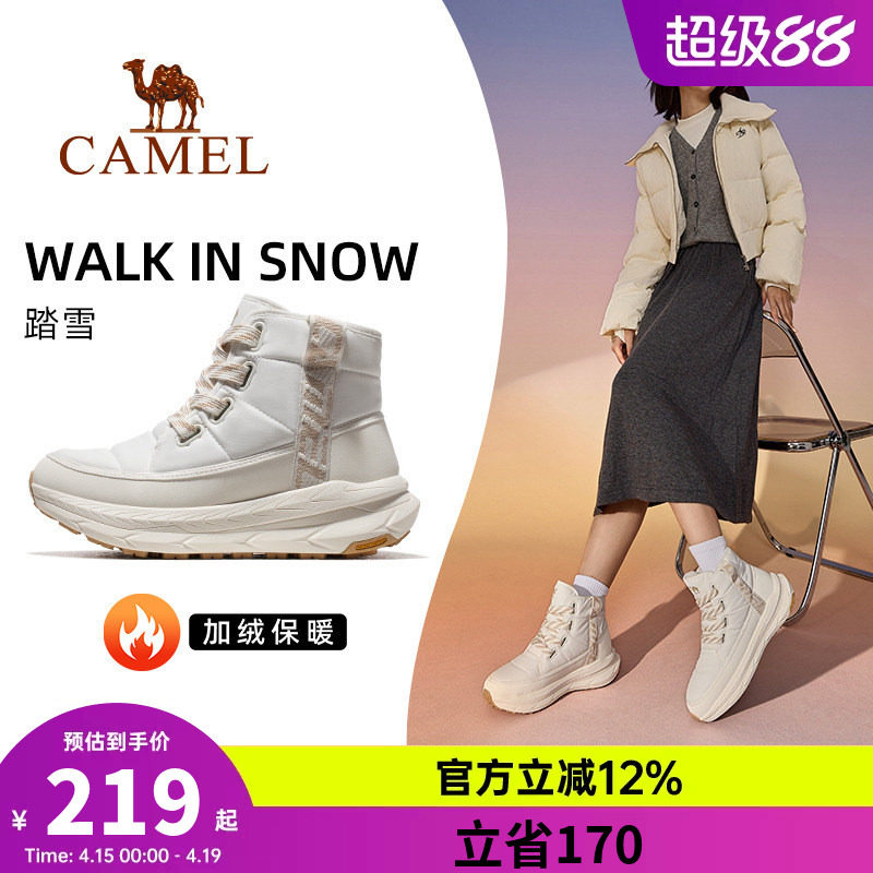 骆驼踏雪运动鞋女雪地靴冬季女鞋防寒防滑高帮靴子保暖加绒棉鞋男