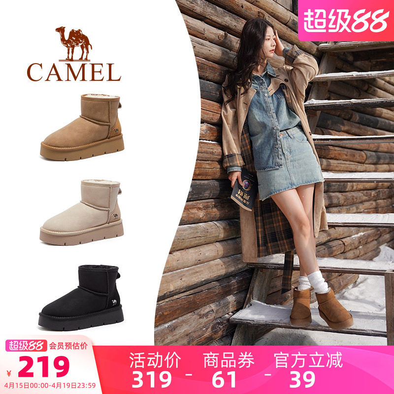 骆驼女鞋2026冬季新款雪地靴女款加绒保暖东北棉鞋户外厚底短靴子