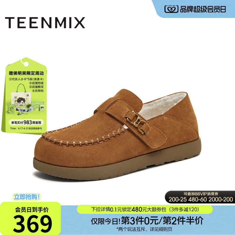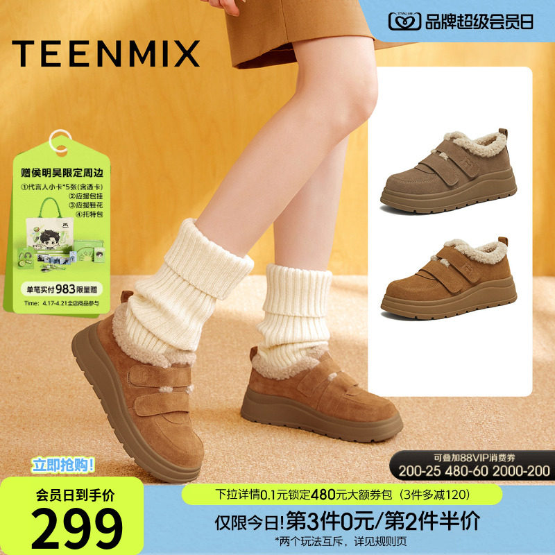 星期六真皮羊毛毛圈厚底雪地靴女2025新款冬季加绒保暖棉鞋棉靴子