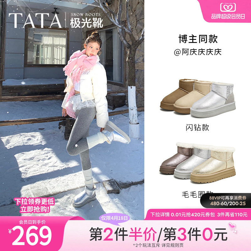 TATA他她极光靴冬季保暖雪地靴女靴休闲加绒毛毛短棉靴子WDX30DD4