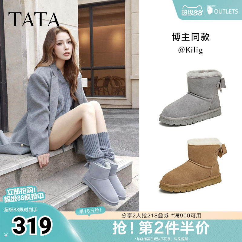 TATA他她冬季保暖雪地靴女靴子加绒休闲复古短靴新款棉鞋WDX21DD4