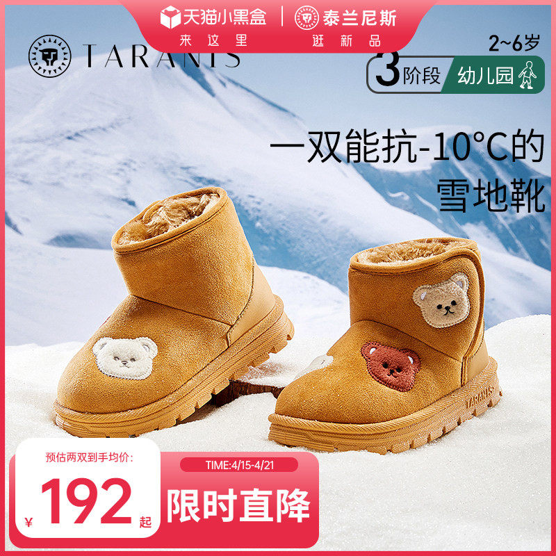 泰兰尼斯儿童雪地靴冬季男童加绒宝宝棉鞋保暖厚底靴子女童毛毛鞋