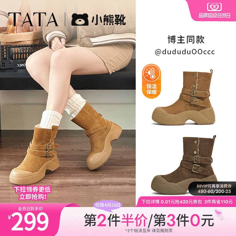 TATA他她加绒厚底小熊靴雪地靴女靴子保暖棉鞋马丁靴冬季CX501DZ4