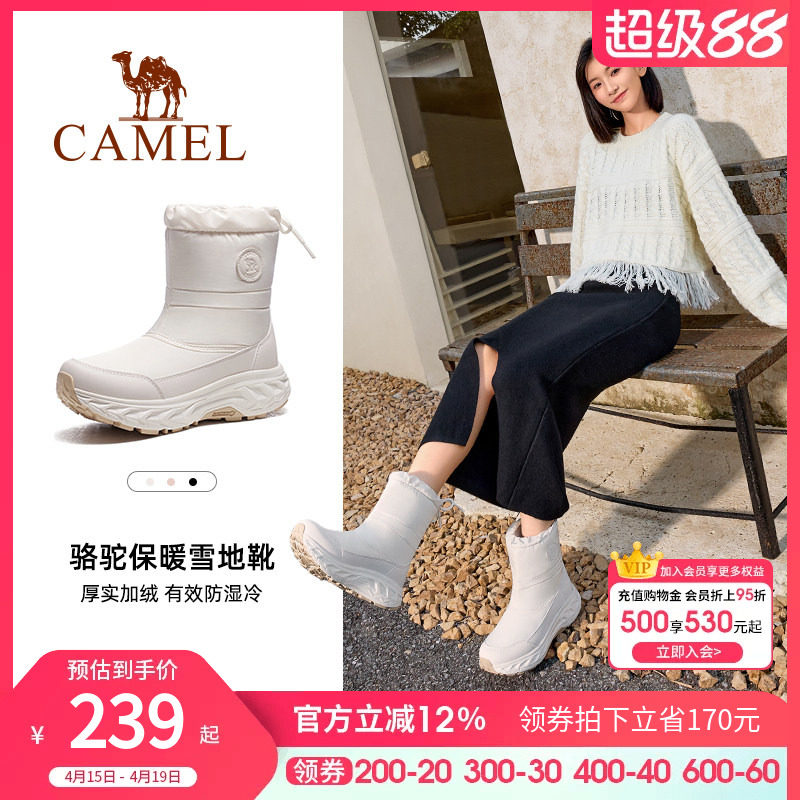 骆驼男鞋雪绒雪地靴冬季新款厚底登山靴子防寒加绒保暖加厚棉鞋女
