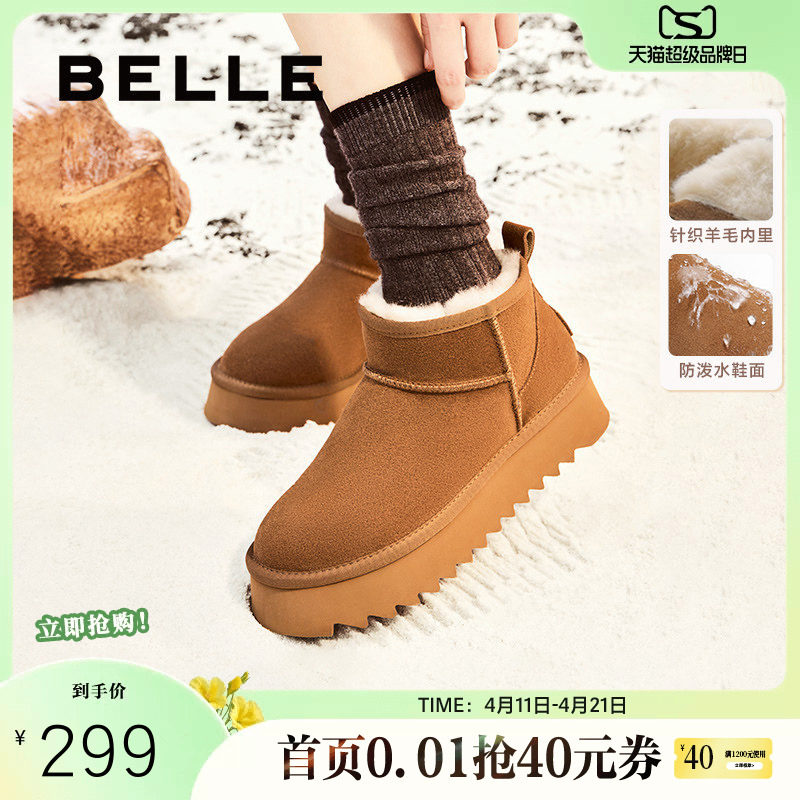 百丽女鞋厚底羊毛雪地靴冬季新款加绒保暖毛毛棉鞋短靴子D1C1DDM4