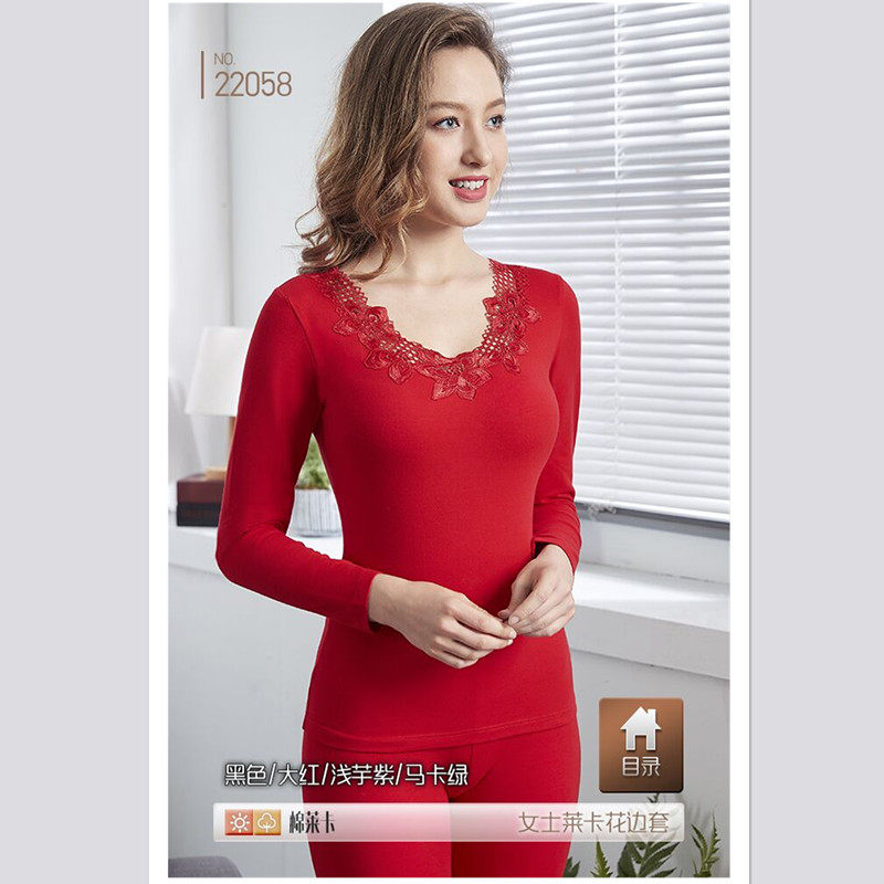 - 大红秋衣秋裤套装女