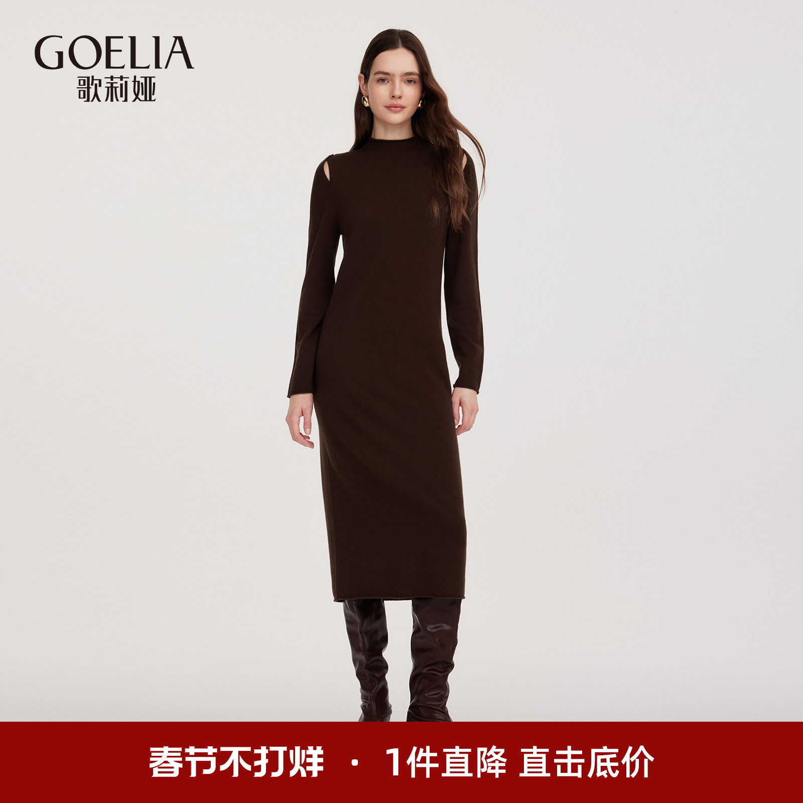 - 中长款羊绒连衣裙
