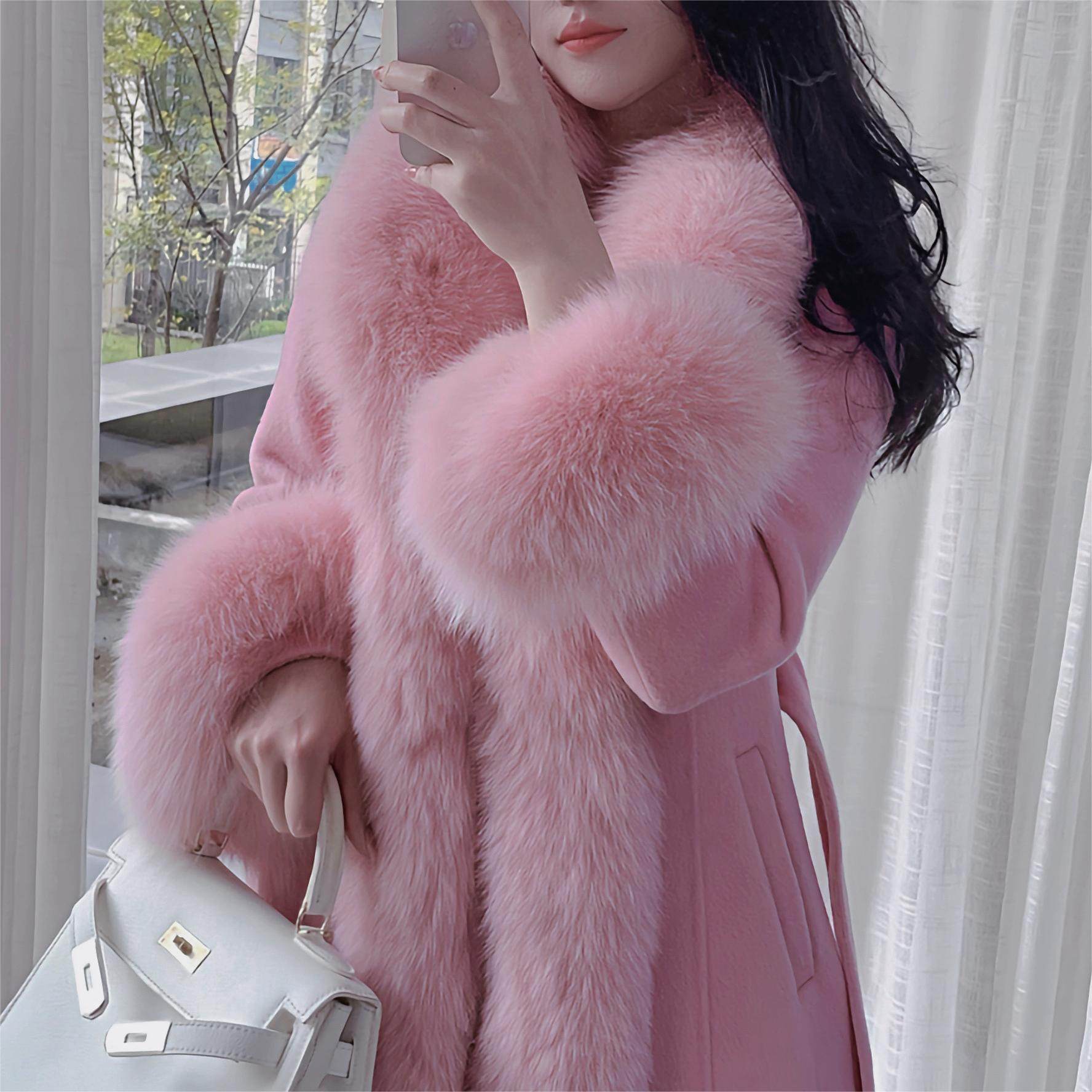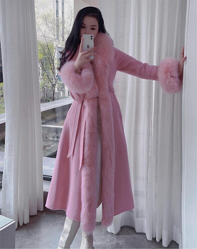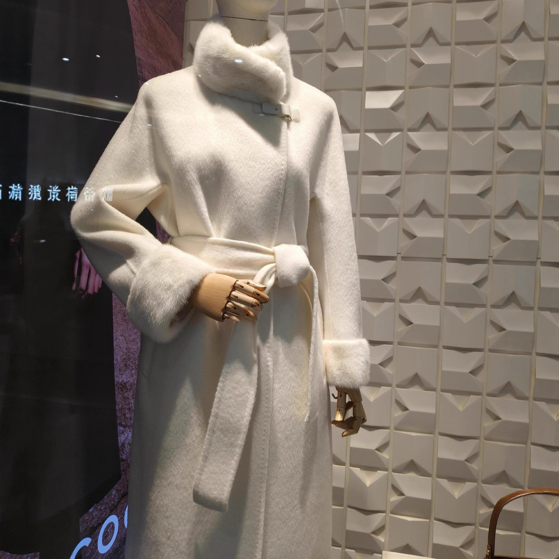 高品质水貂毛领保暖长款双面羊绒大衣新款绵羊毛呢外套~不退可换