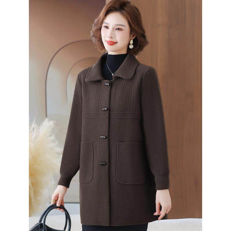 小个子妈妈装秋季双面羊绒大衣新款中老年女秋冬短款羊毛呢子上衣