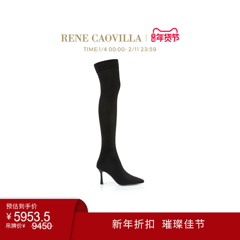 【断码特惠】RENE CAOVILLA GRACE系列黑色针织高筒靴过膝靴