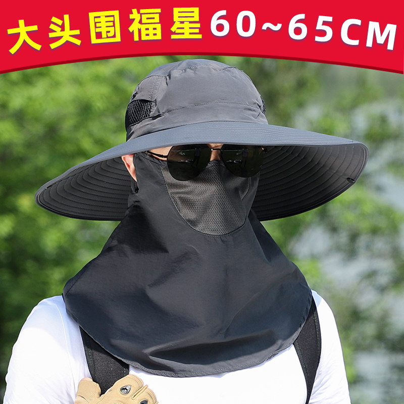 大头围帽子男遮阳帽户外防晒帽夏季钓鱼帽防紫外线草帽太阳渔夫帽