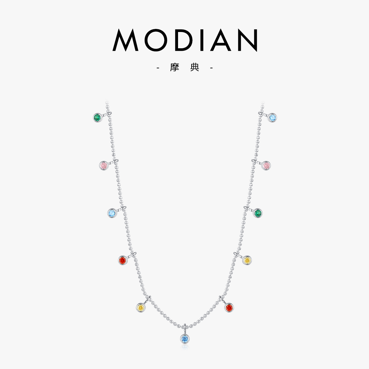 日韩流行S925纯银彩色锆石项链女小众设计感时尚简约通勤风锁骨链