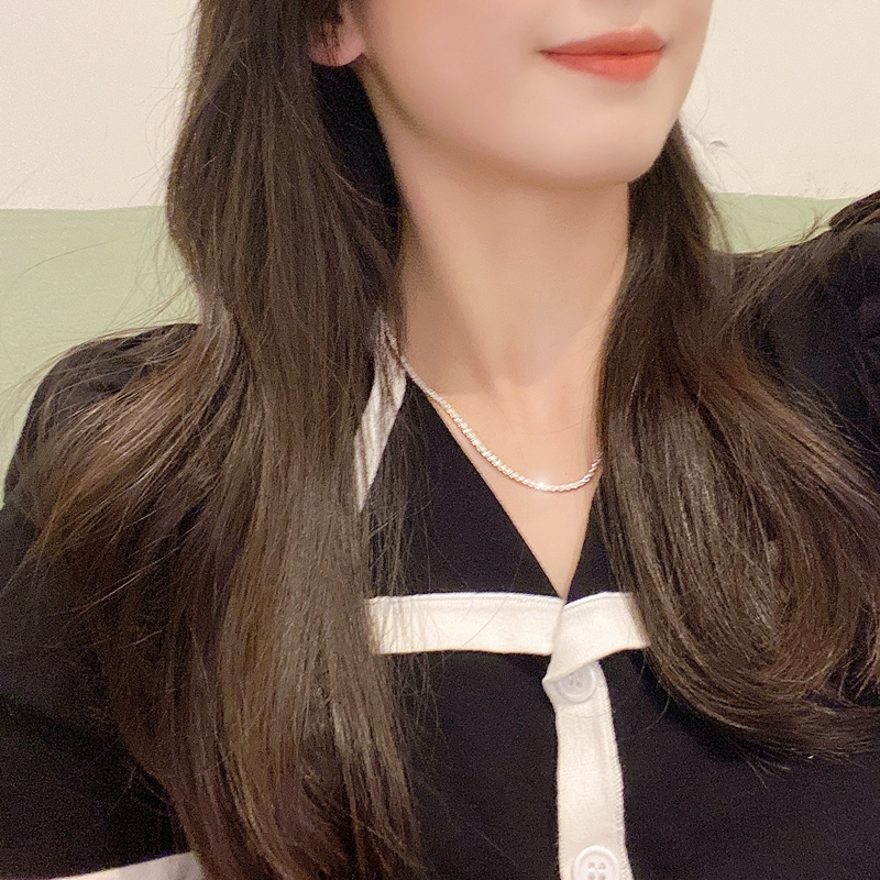 s925银项链盒子链女锁骨链子日韩饰品吊坠简约装饰颈带配饰时尚