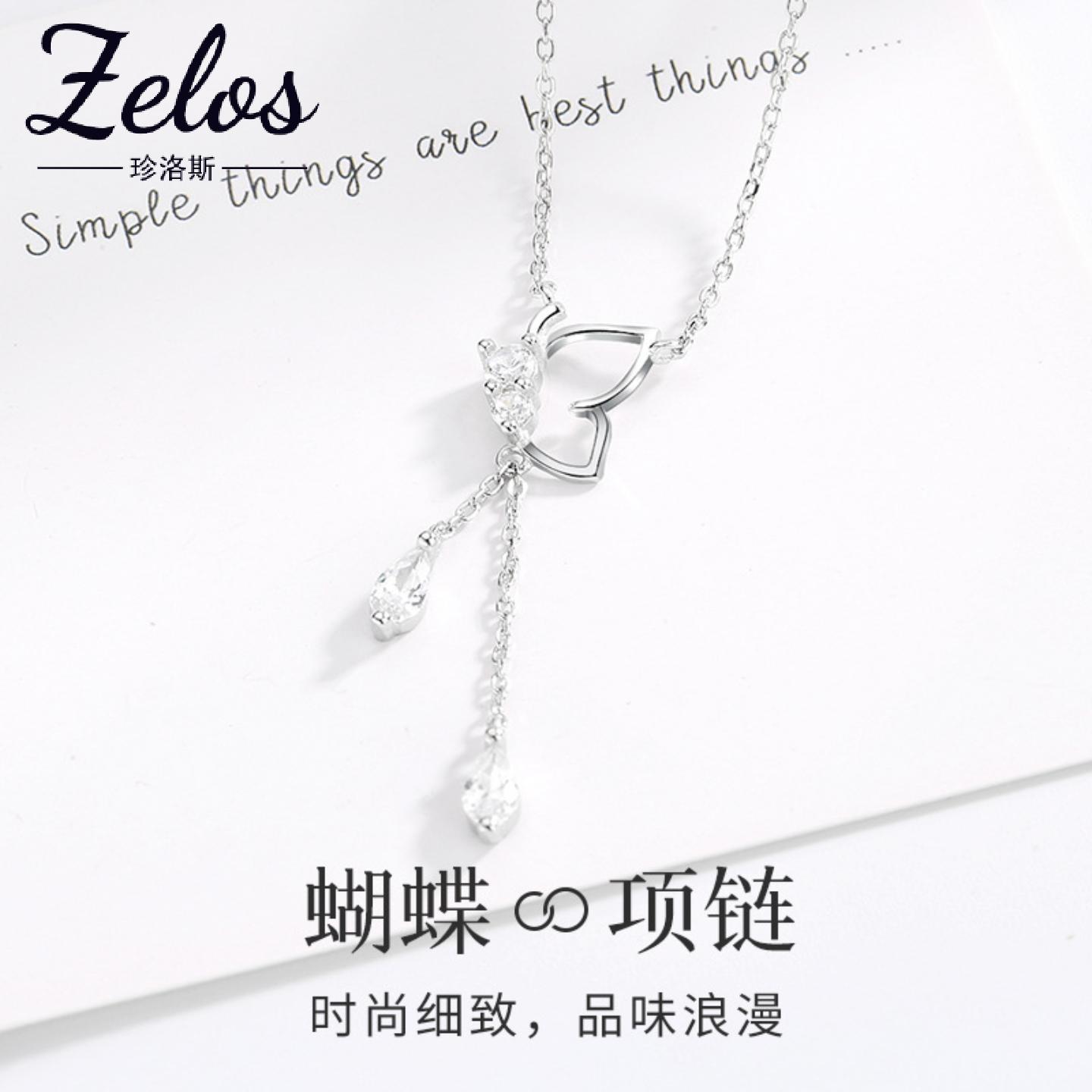 s925银项链女日韩小清新蝴蝶镶钻吊坠简约气质ins冷淡风百搭配饰