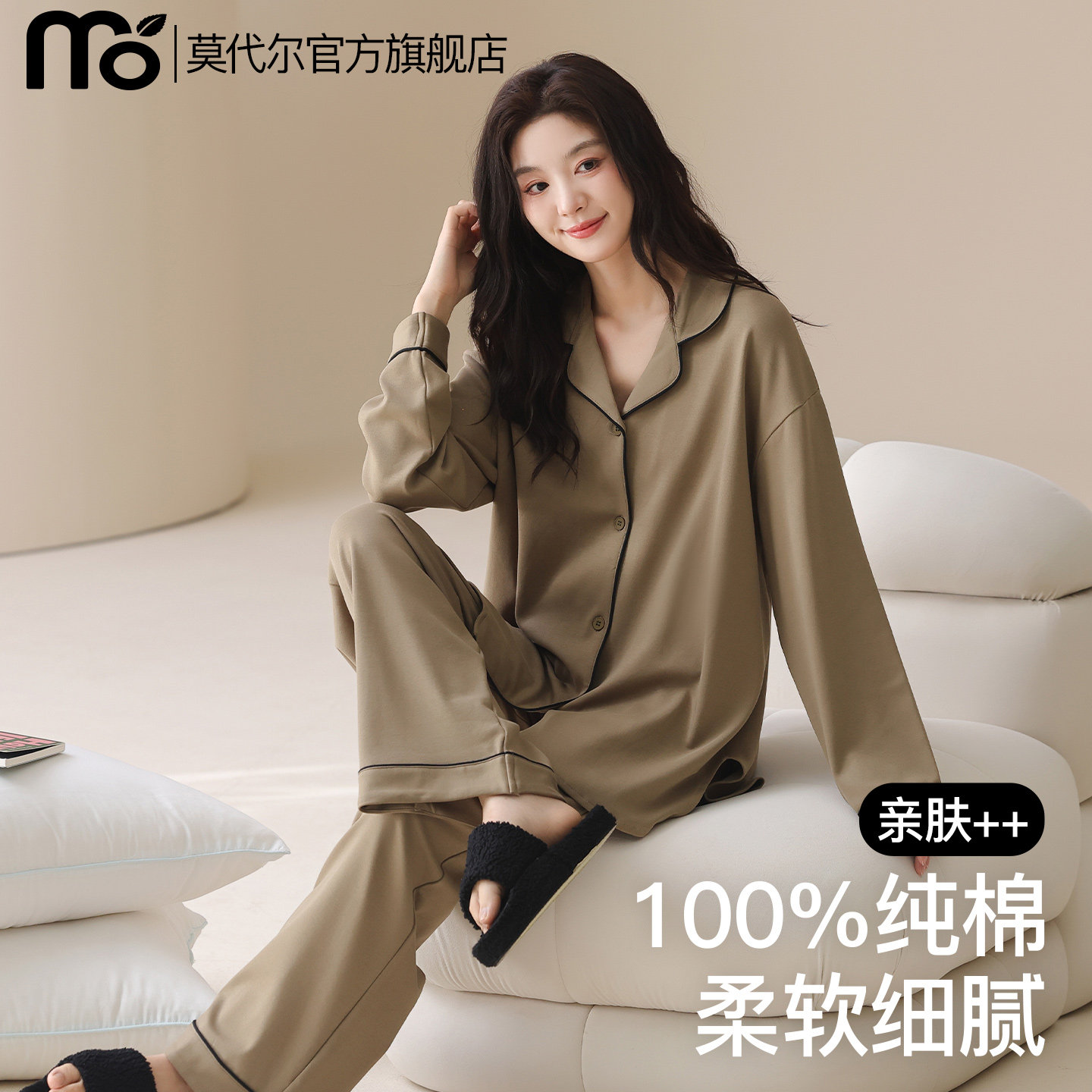 莫代尔女士睡衣纯棉长袖开衫卡通印花全棉家居服套装2025秋季新款