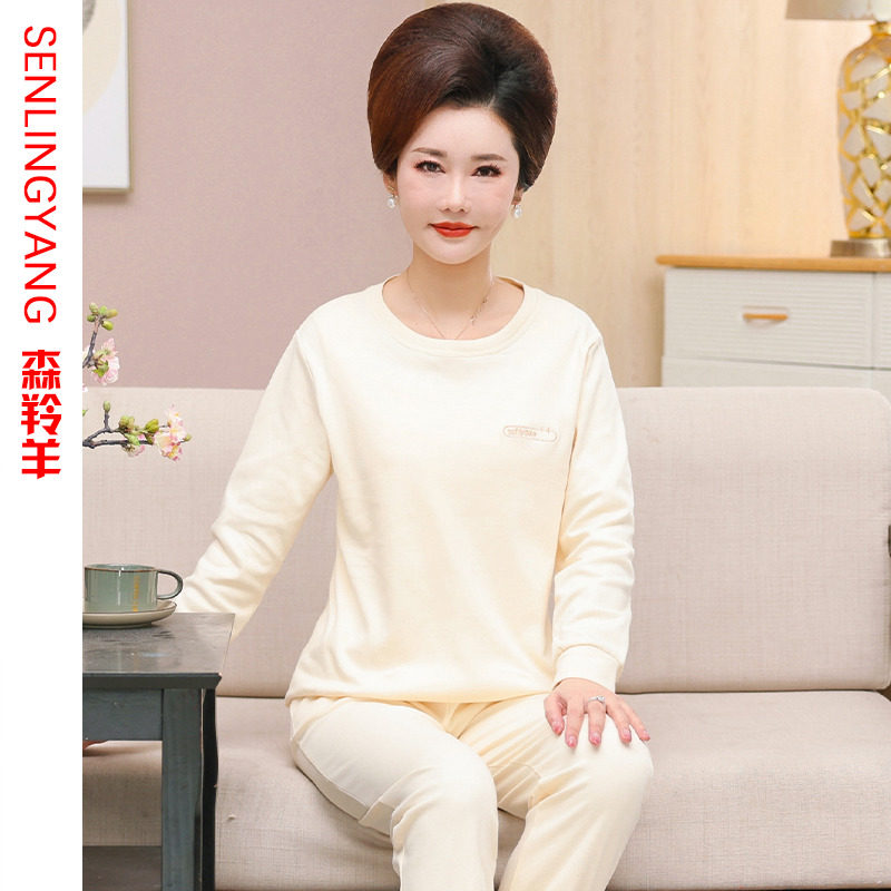 中年人女士睡衣纯棉长袖薄款春秋季套头妈妈家居服秋冬款大码套装