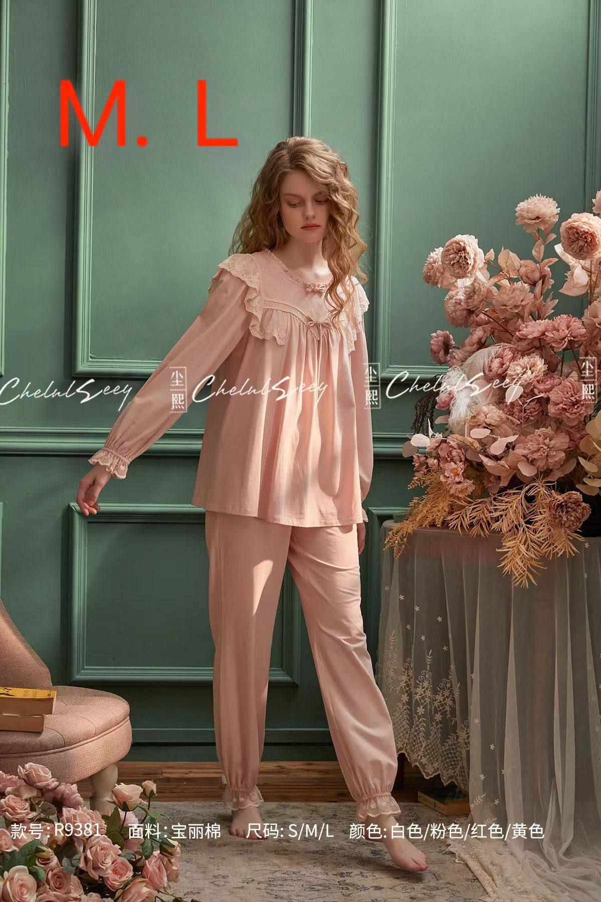 女士睡衣纯棉长袖开衫宫廷风家居服全棉公主风甜美套装春秋可外穿