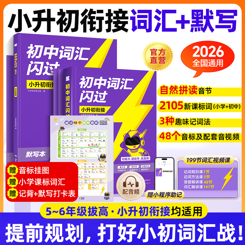 【旗舰店】2026闪过小升初英语词汇初中1600词汇小学五年级六年级考试短语真题阅读写作视频课单词宝典词汇语法速记挂图复习资料书