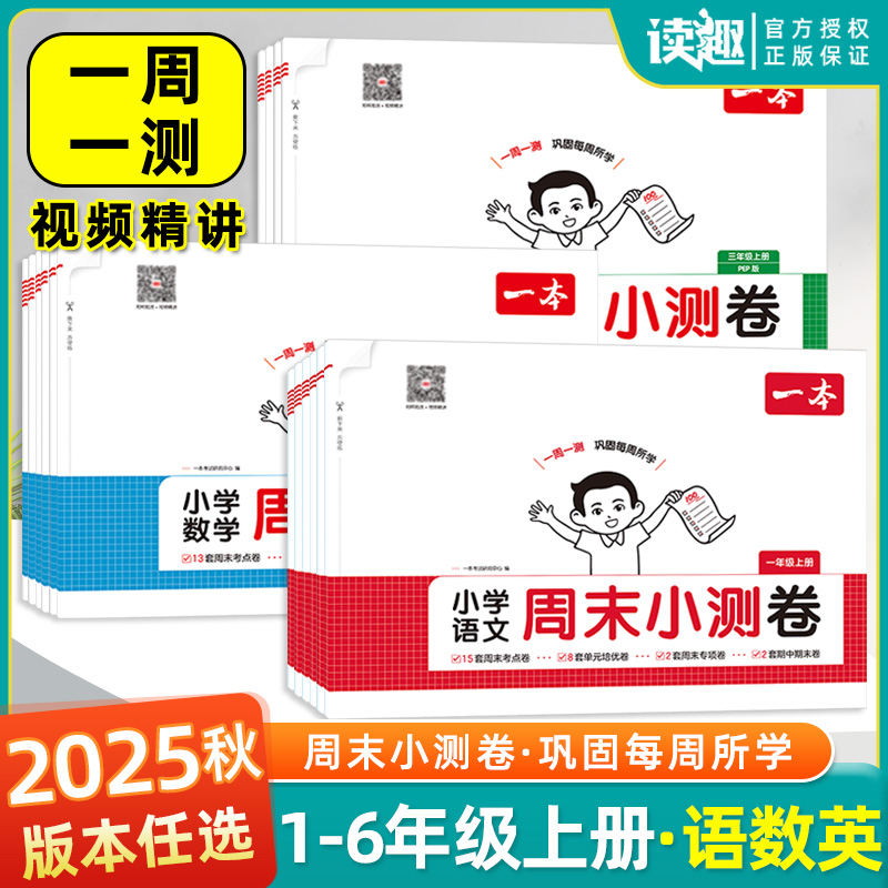 2025秋一本小学语文数学英语周末小测卷一二三年级四五六年级周周测试卷秋季语数英同步单元检测培优试期卷期中期末试卷配视频