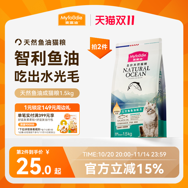 麦富迪猫粮三文鱼油成猫幼猫天然专用粮官方旗舰店正品猫粮1.5kg