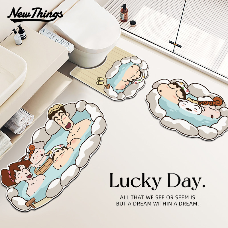 蜡笔小新浴室吸水地垫卫生间防滑垫洗手台硅藻泥脚垫马桶U型垫子