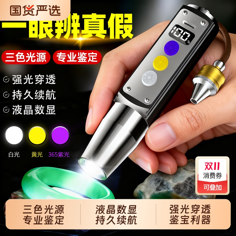 鉴别真假翡翠和田玉石鉴定神器强光手电筒365紫光灯检测珠宝荧光