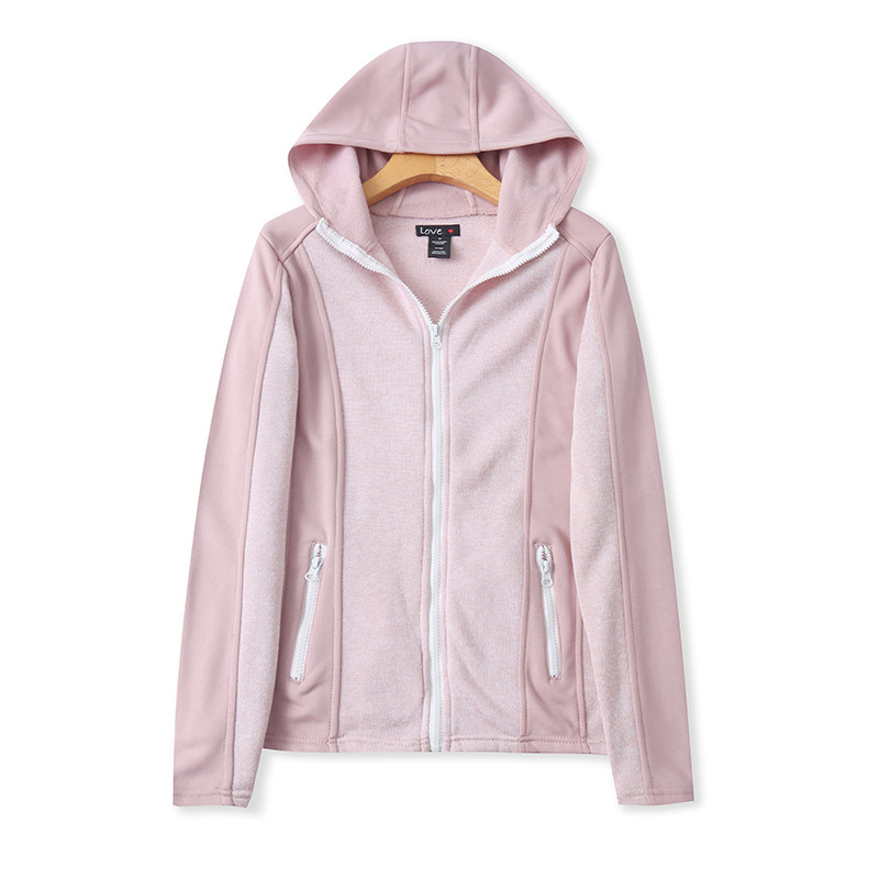 外贸加绒拉链卫衣 秋冬新款修身拼色连帽开衫女上衣运动外套01062
