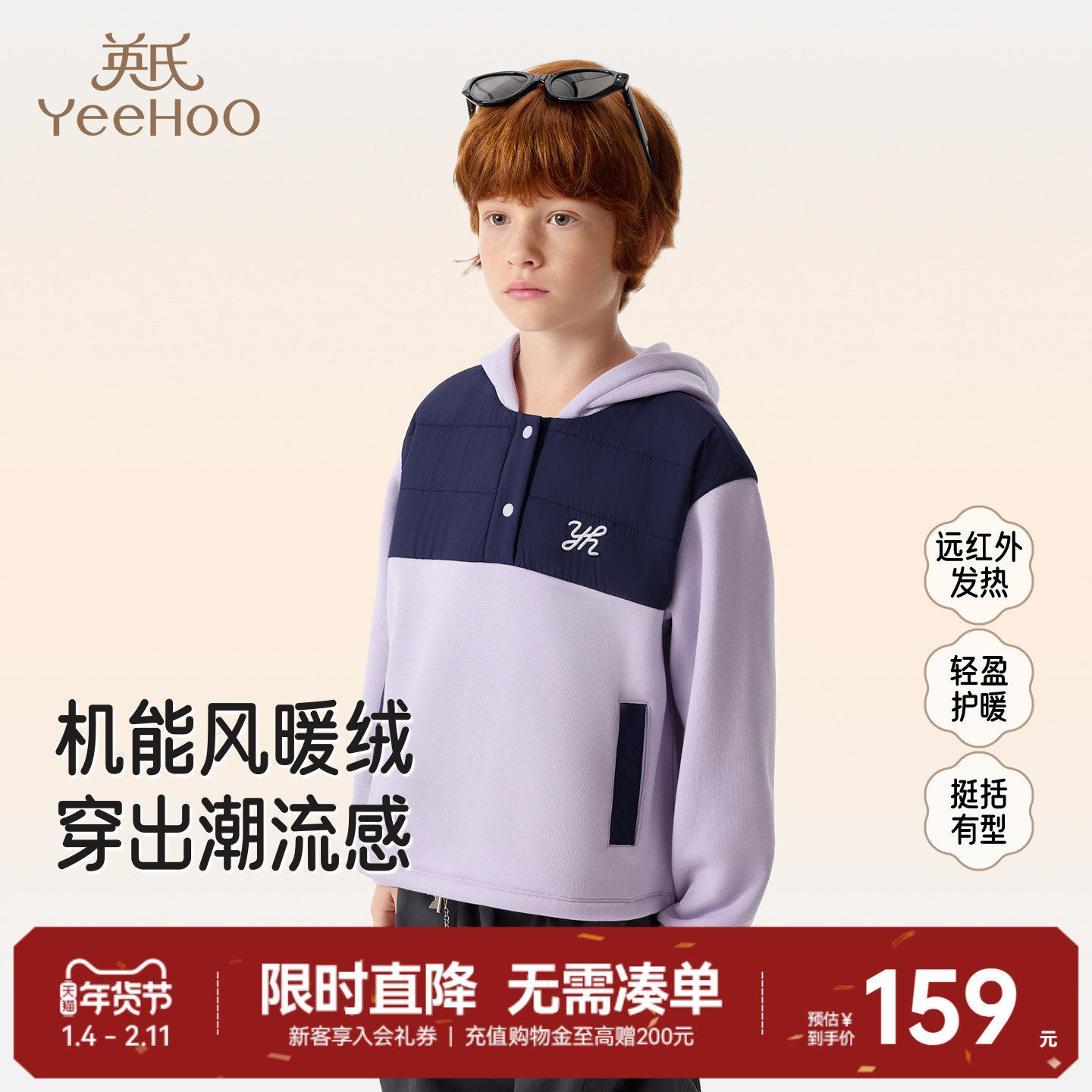 英氏儿童卫衣连帽男童加绒加厚秋冬保暖女童针织拼色时尚新款外套