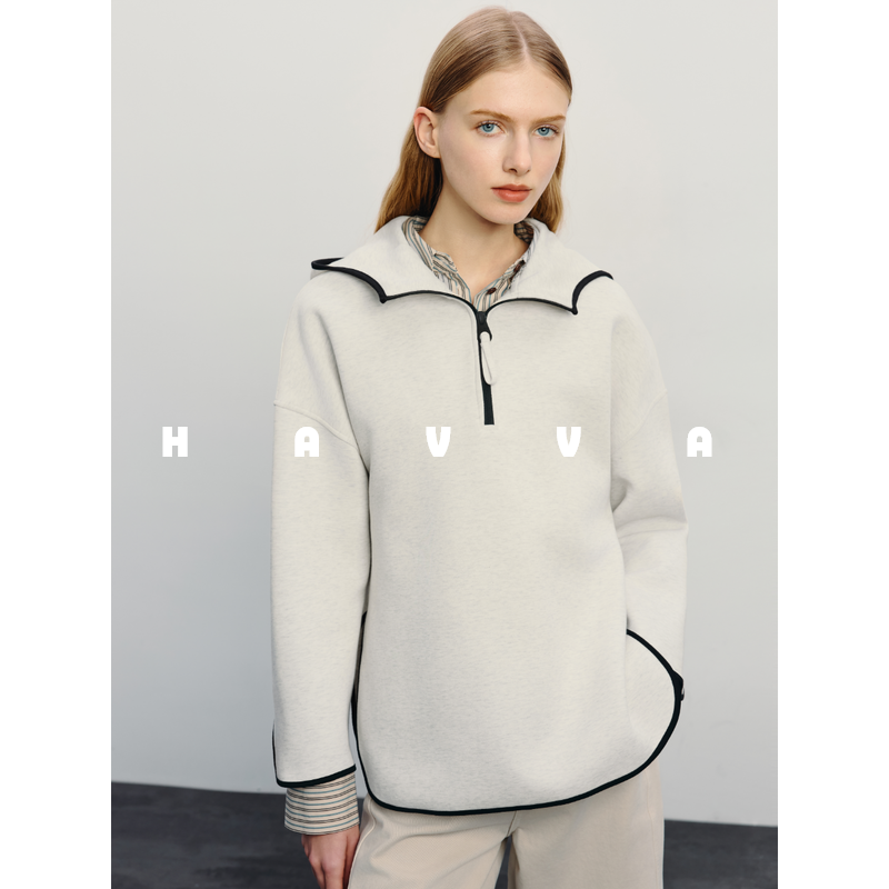 HAVVA设计感拼色简约廓形卫衣休闲连帽女士上衣2026春季V3-2931