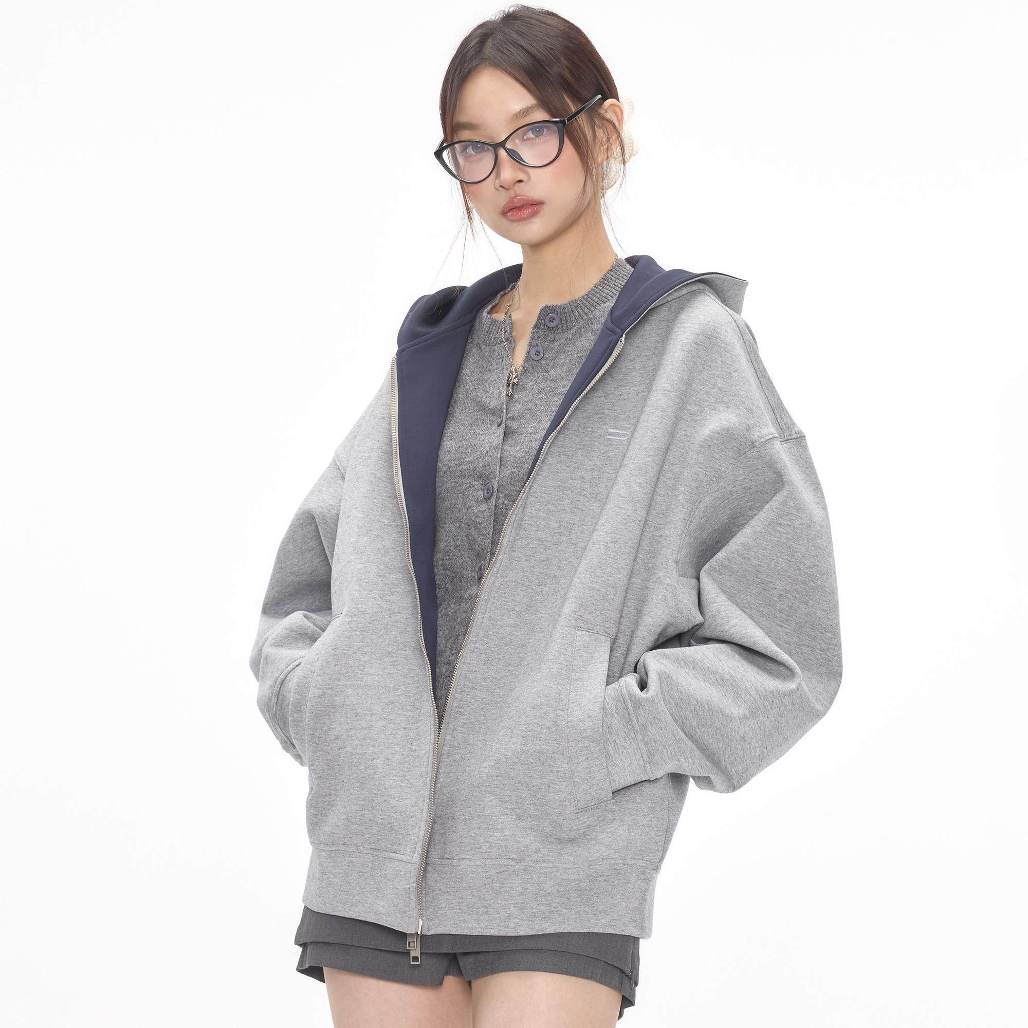 CODICE LAB 空气层复合灰色拼色连帽卫衣基础通勤显瘦上衣外套女