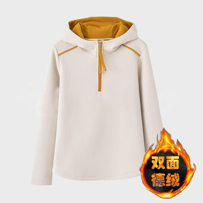 2024秋冬设计感双面德绒保暖卫衣时尚拼色连帽半拉链打底衫上衣女