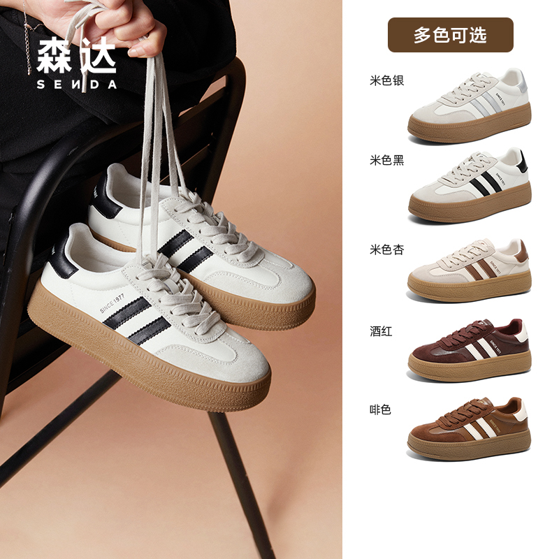 森达德训鞋女秋季新款商场同款经典运动鞋厚底增高板鞋百搭小白鞋