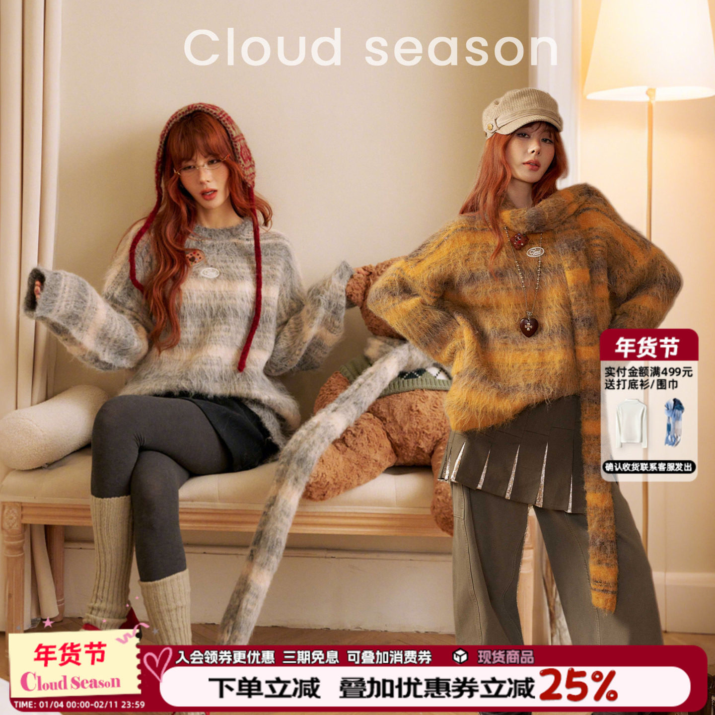 CLOUDSEASON条纹毛衣冬季新套头毛衣女针织衫女上衣条纹针织衫
