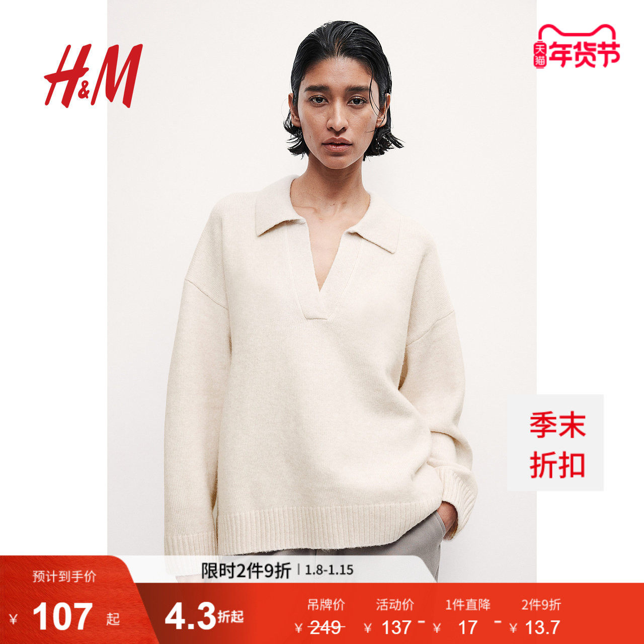 HM女装针织衫V领内搭时尚内搭复古条纹上衣套头衫打底衫1093199