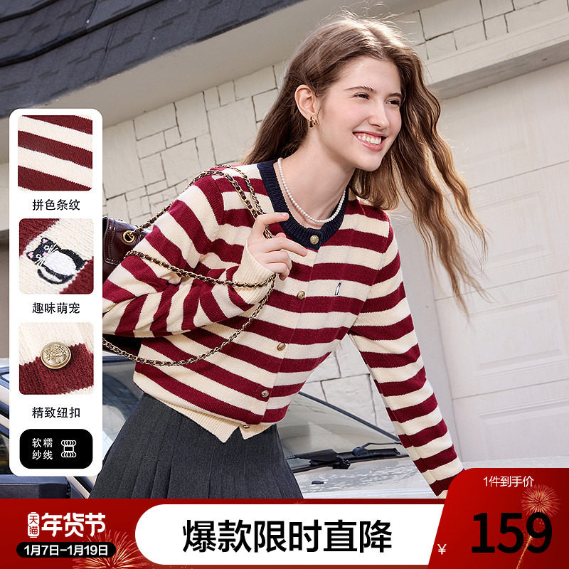 betu百图经典撞色条纹针织衫女套头2025年秋季新款牛角扣毛线衣