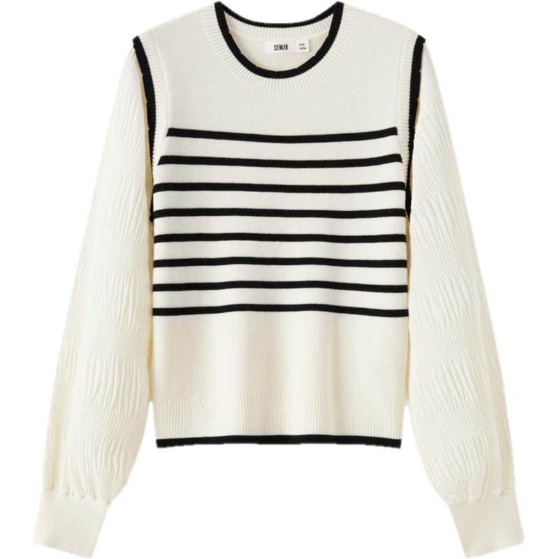 森马针织衫女撞色假两件条纹打底衫冬季2024新款含羊毛套头毛衫