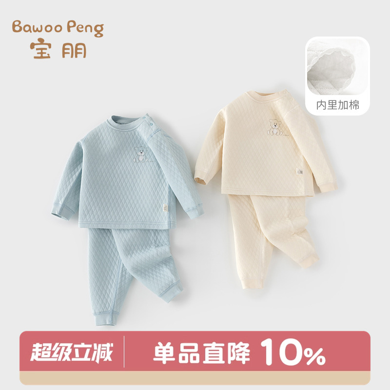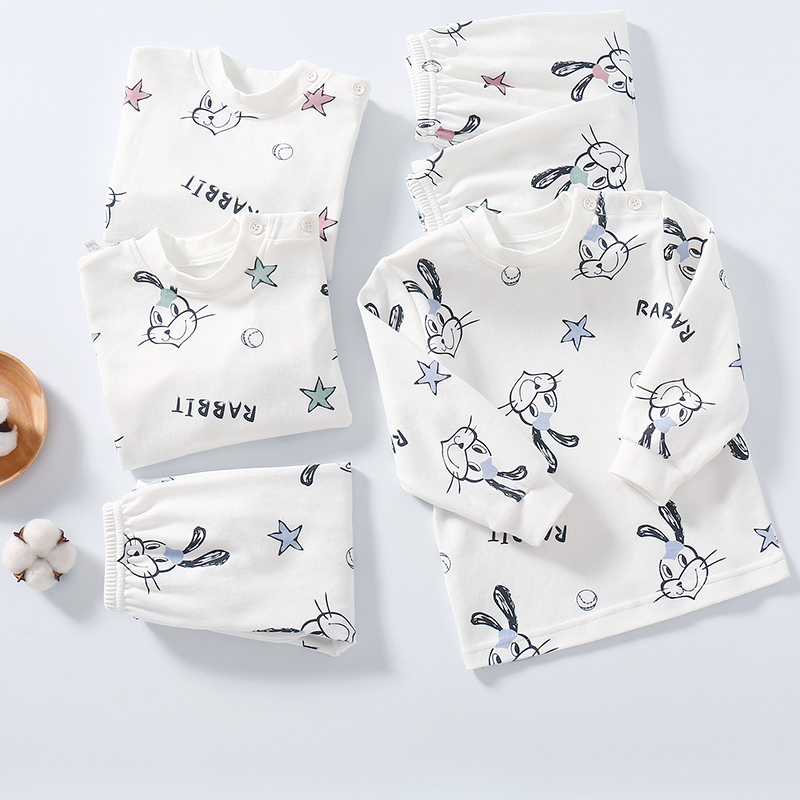 有吉小贝宝宝保暖内衣纯棉套装儿童高腰夹棉加厚男女童婴儿睡衣冬