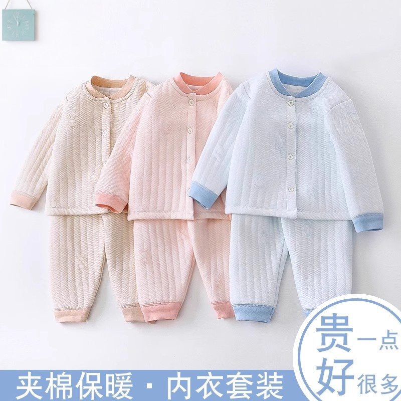 儿童保暖内衣纯棉套装宝宝秋衣秋裤夹棉三层保暖上衣睡衣婴儿冬季