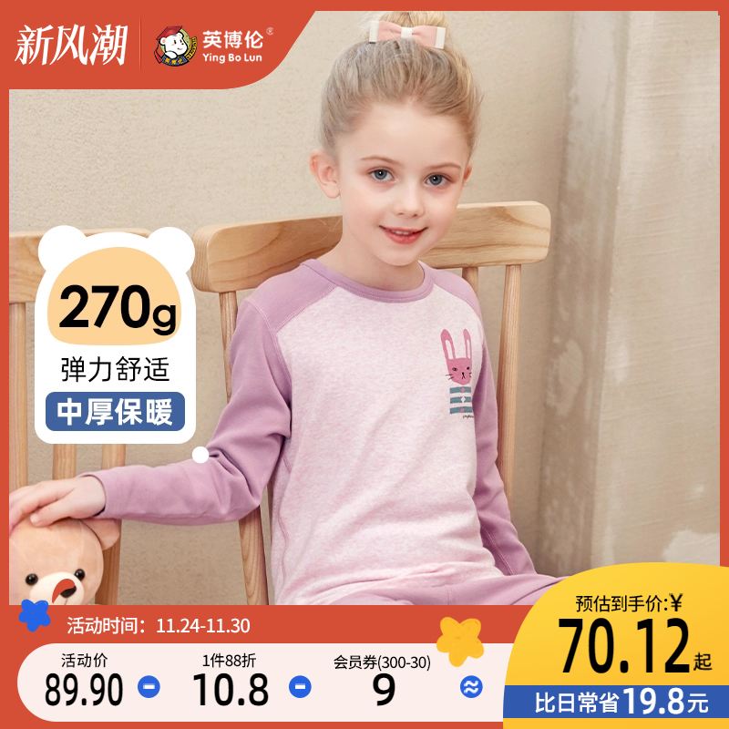 英博伦女童内衣套装纯棉儿童宝宝保暖秋衣秋裤全棉秋冬女孩棉毛衫