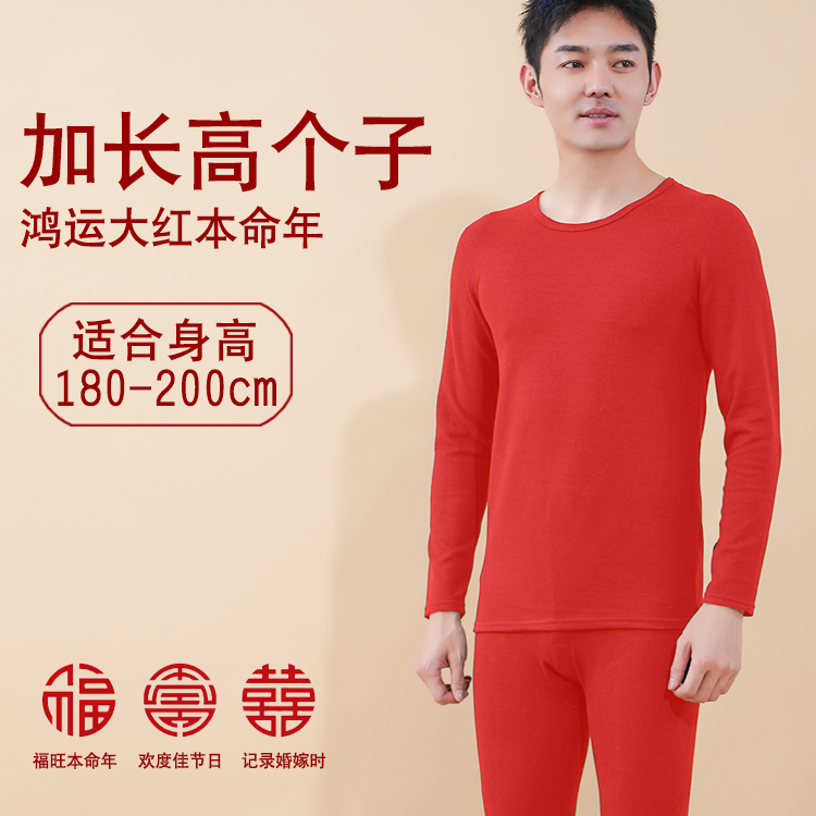 加长高个子大红本命年鸿运秋衣秋裤保暖内衣纯棉套装龙年蛇年2025