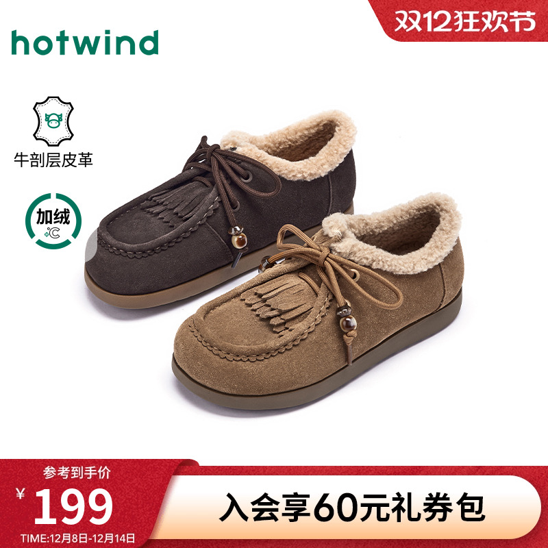 热风加绒乐福鞋女鞋2025年冬季新款休闲舒适毛毛鞋平底舒适棉鞋