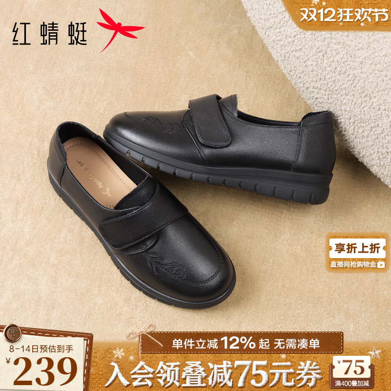 红蜻蜓妈妈鞋不累脚秋季女鞋单鞋中老年鞋子舒适软底真皮平底皮鞋